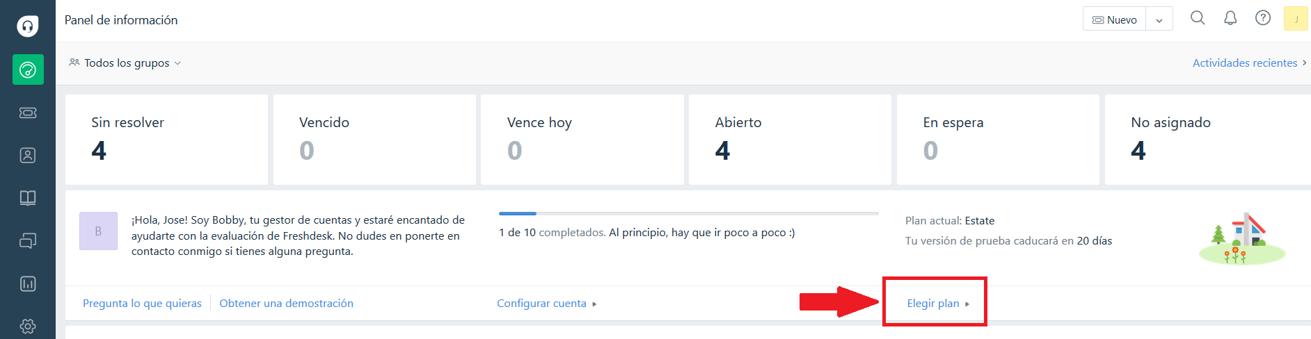 4. El sistema empieza a configurar tu nuevo plan y con las opciones básicas pero potente que puede ofrecerte Freshdesk.