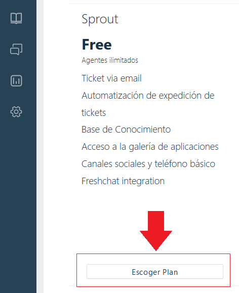 2. En la siguiente ventana tendremos todos los planes que ofrece Freshdesk, como deseamos es escoger el plan gratuito, seleccionamos el Plan Sprout.